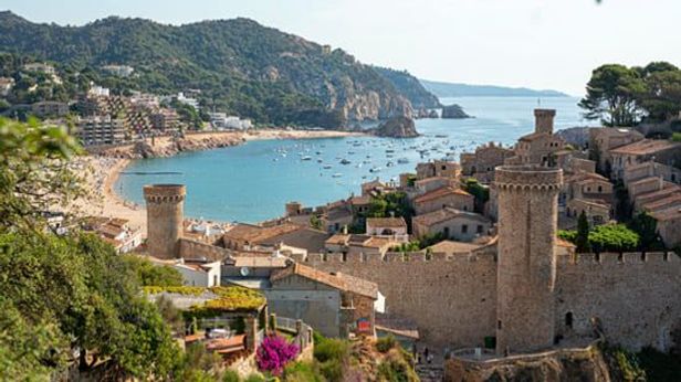 The Costa Brava is a spectacular stretch of Mediterranean coastline located north of Barcelona, known for its steep cliffs, hidden coves, and charming fishing villages. One of these is Tossa de Mar, a delightful town famous for its intensely blue coves, golden sandy beaches, its imposing medieval fortress, and for being a haven for artists in the 20th century.